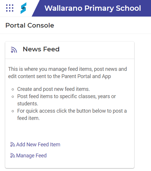 Portal Console is where you manage news feed items, post news, and edit content sent to the Parent Portal and App. Here’s some examples of what you can do: